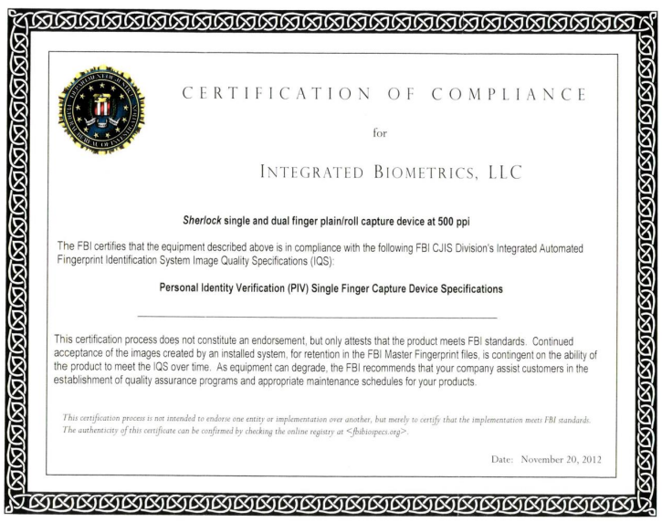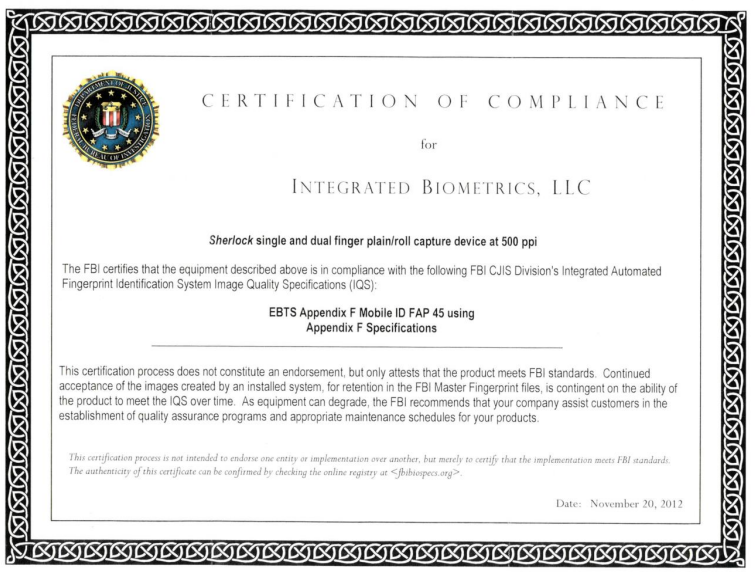 LES 500 DPI Image Capture Size: 1.6 x 1.5 inch FAP45, PIV, GSA FIPS 201, FBI Appendix F Certified |